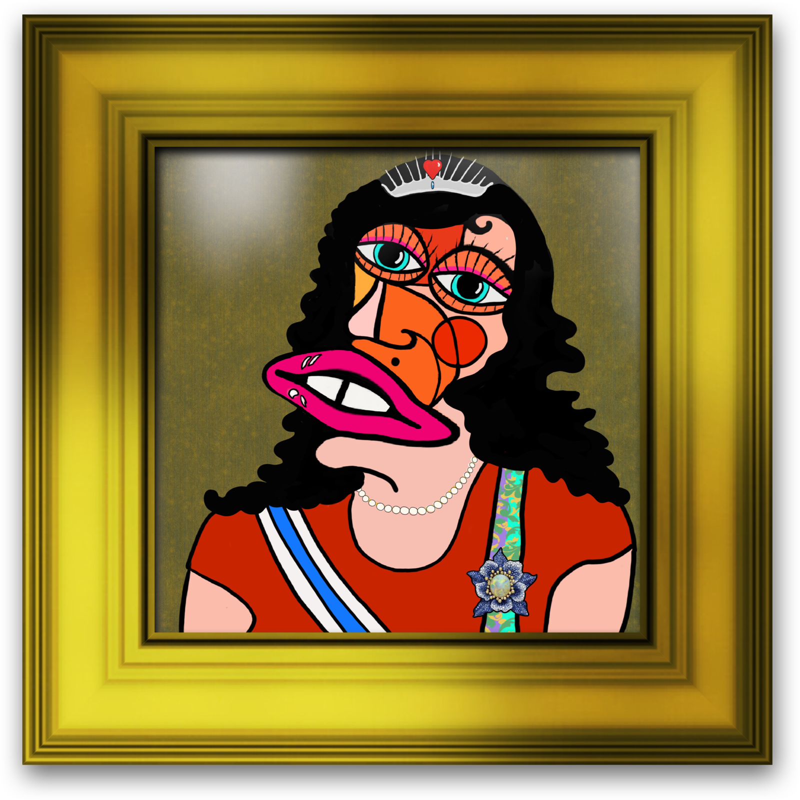 Dessin original Créé à l’origine sur fond bleu au format 600x600mm , se voit complété en détails et décliné au format 450x450mm sur un fond rose cochon en exemplaire unique .